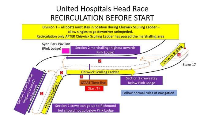 Penalty for lateness 4 seconds for each minute late passing the start sign going upriver